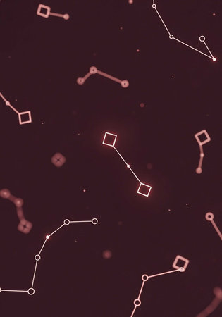 A stunning visual representation of constellations in a dark night sky with pink and white lines