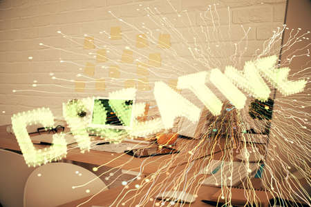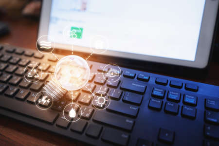 Creativity concept, Business team working on laptop computer with creativity icon on virtual screen.