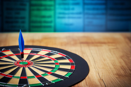 darts target on dark wooden table
