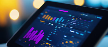 A detailed view of supply chain metrics on a tablet with graphs and iconbased indicators for performance efficiency and responsiveness adorning the screen set in a minimalistic design