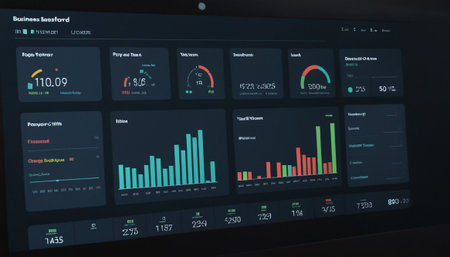 Close-up of a sophisticated data visualization dashboard featuring various graphs and analytics for monitoring performance and trends in real-time.