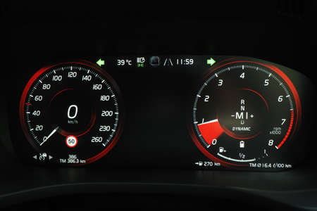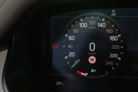 Odometer Car digital modern , Panel of devices of car afoot. background is not isolated. the Neterlands.