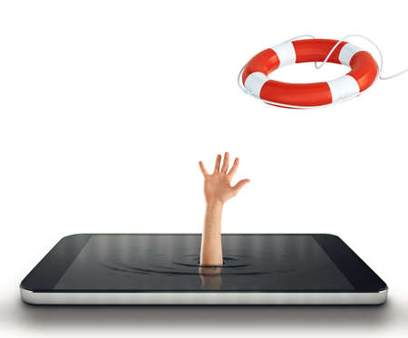 Man asking for help while drowning in a sea of digital data. Digital illustration.