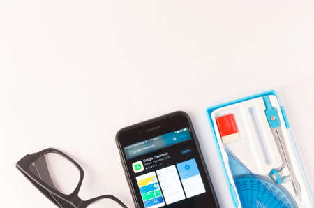 Kuala Lumpur, Malaysia - April 16, 2020 -Black smart phone with Google Classroom application on screen. Online education concept.