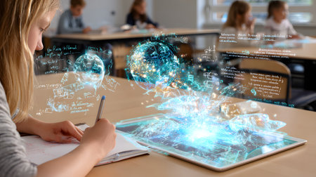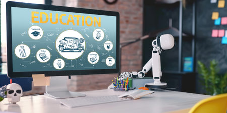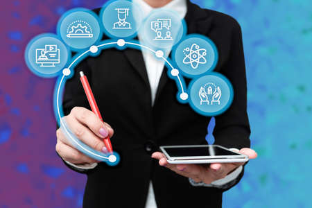 E-learning and Online Education for Student and University Concept. Graphic interface showing technology of digital training course for people to do remote learning from anywhere.