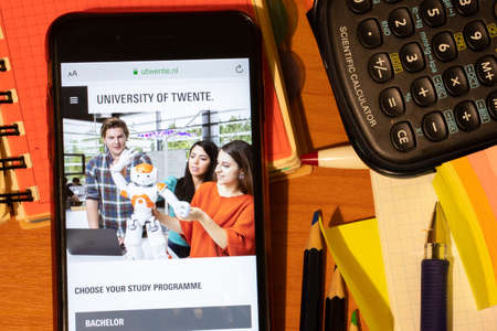 Saint-Petersburg, Russia - 10 January 2020: Phone screen with University of Twente website page. Higher education admission concept, Illustrative Editorial.