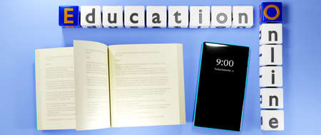 Digital Online Education. 3d render of mobile. Application learning on phone, mobile website background.