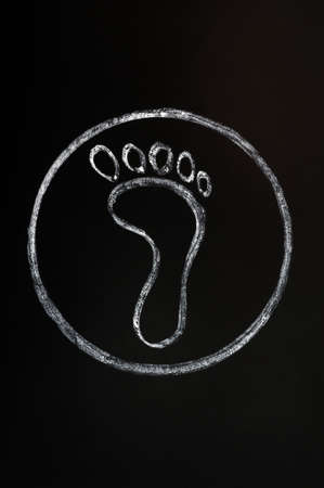 Chalk drawing of footprint symbol on a blackboard background with a circle