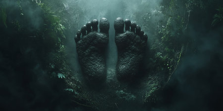 A creative footprint showcasing a lush forest illustration embedded in dirt texture