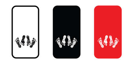 The black footprints on the wall are mystical. Footprints in a gloomy Halloween style. Photos with noises, grain - Halloween, paper decorations.