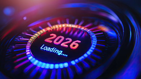 Visual representation of a futuristic countdown indicator set to 2026, highlighting anticipation and excitement with colorful digital display elements.
