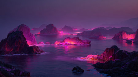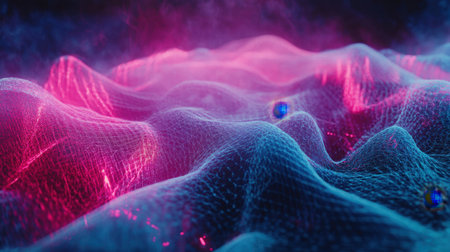 This captivating image features an abstract futuristic landscape with vibrant pink and blue waves, symbolizing the flow of digital technology and energy.