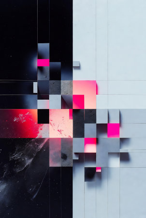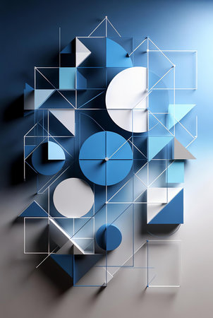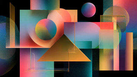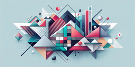 A striking abstract composition featuring geometric shapes and vibrant colors. This digital art piece serves as an inspiration for modern design and creative projects.
