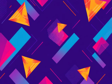 This dynamic abstract background features an array of vibrant geometric shapes in bold colors, perfect for creative design projects and artistic inspiration.