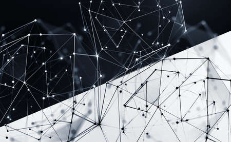 black and white interior poster. Polygonal network and high tech 3D illustration. Border of two worlds and artificial intelligence