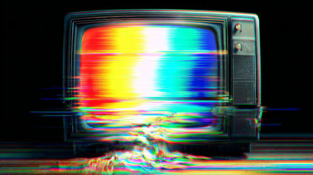 Retro TV glitch with melting rainbow screen. Generative AI