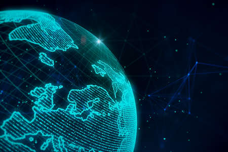 Futuristic digital world with global network lines connecting, symbolizing communication technology for internet business and global commerce