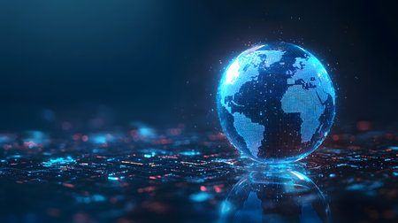 Stunning digital illustration of a globe made of particles, set in an abstract futuristic background, representing technology and global communication in a modern world.