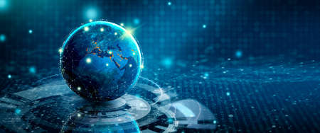 global earth with data artificial intelligence network technology internet cyber with futuristic style, 3d illustration, Element of this image furnished by NASA