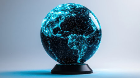 Digital globe with luminous network lights across continents, ideal for global reach concepts