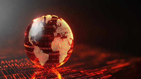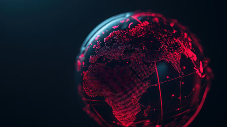 A stunning digital representation of a globe surrounded by vibrant red light effects, symbolizing technology and global connectivity. Perfect for representing innovation and digital communication.