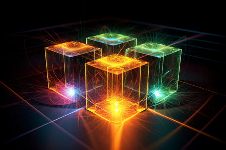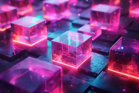 An AI generated illustration of illuminated crystal cubes displayed on a flat background