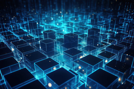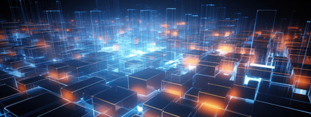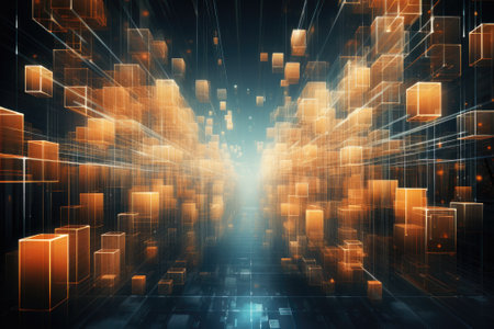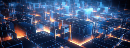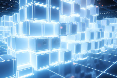 abstract 3d illustration of technology background with glowing cubes and lights