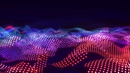 3d rendering of abstract wavy surface with glowing particles. Futuristic background with dynamic waves.