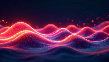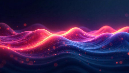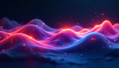 Abstract Glowing Waves with Particles and Dark Background
