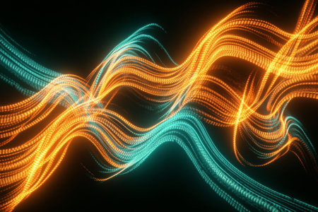 Abstract neon waves glowing against a dark background