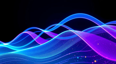 Abstract background featuring smooth waves with glowing neon accents