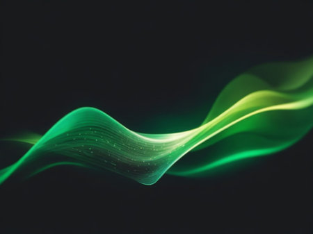 abstract background with green glowing lines and bokeh effect.