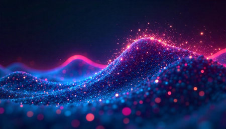 Abstract glowing waves with sparkling particles in a digital landscape