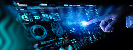 A close-up view of modern digital user interface elements featuring interactive graphs, sleek buttons, and control panels. Ideal for technology and design projects.