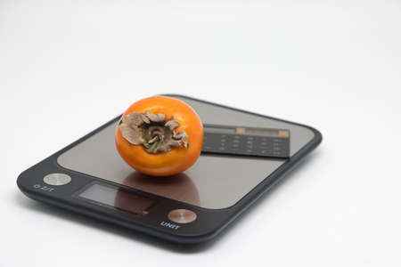 Orange on the scales. Weight loss, diet and weight control. Still life with healthy food and scales. Health food. The concept of a healthy lifestyle. weight control