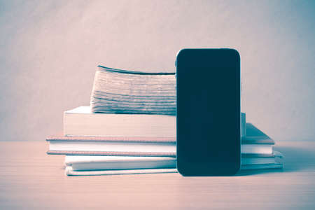Welcome back to school background. Top view of a smart mobilephone over lot of opened books. Wisdom, knowledge, education concept.