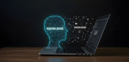 AI Knowledge Transfer: Digital Brain, Laptop, Data Flow