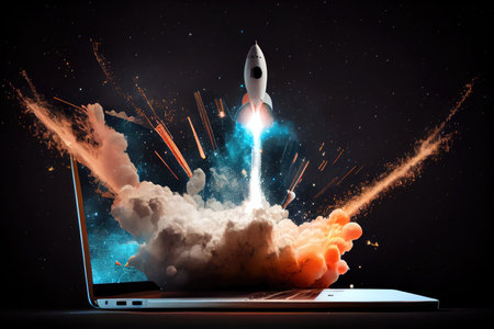 a rocket flies out of a laptop, generative ai