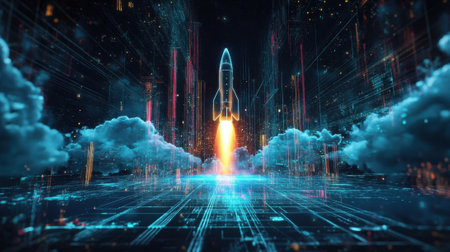 Embark on a journey of innovation and ambition with this captivating image. A rocket launch symbolizes the spirit of startups and the dynamic nature of the business world. This concept captures the excitement and determination that drive entrepreneurs and their quest for success. The fiery propulsion of the rocket represents the power of ideas and the drive to reach new heights. Perfect for projects related to startups, entrepreneurship, business concepts, technology, innovation, and the pursuit of ambitious goals