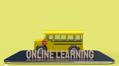 school bus and tablet for online learning or e learning concept 3d rendering.