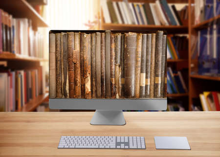 Digitization process from books to ebooks. from paper to digital in a laptop