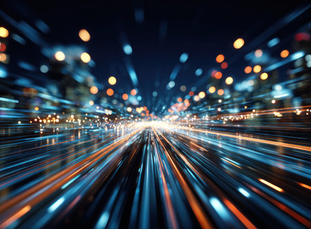 Abstract cityscape, blur of lights and speed, a vision of technology and rapid movement
