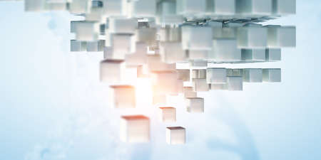 Glowing cubes. Innovation and creativity concept. Mixed media