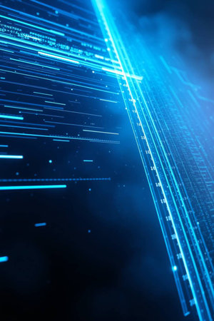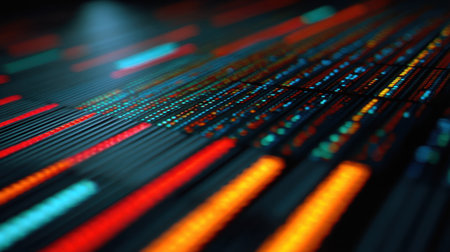 Close-up view of abstract digital data lines with vibrant colors, creating a futuristic and technological visual effect.