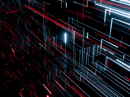This abstract digital background features vibrant lines and patterns in striking colors, ideal for contemporary design, technology applications, and artistic projects.