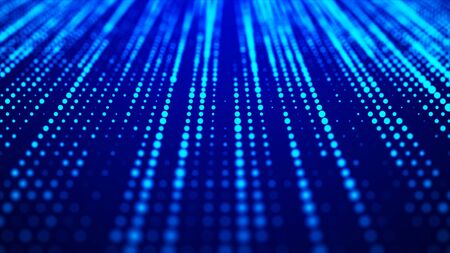 Digital blue background of particles. Abstract futuristic illustration. Big data visualization. Technology dynamic dots background. 3D rendering.