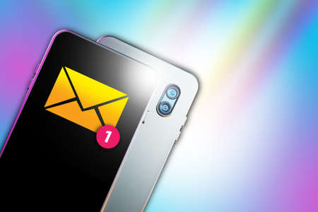 Email notification. A new letter on the smartphone screen. An icon with a letter on the mobile phone screen. A smartphone screen with an unread email message. Exchange of emails. 3d image