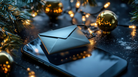 A close-up of a holiday-themed email with a business Christmas message displayed on a Smart phone screen