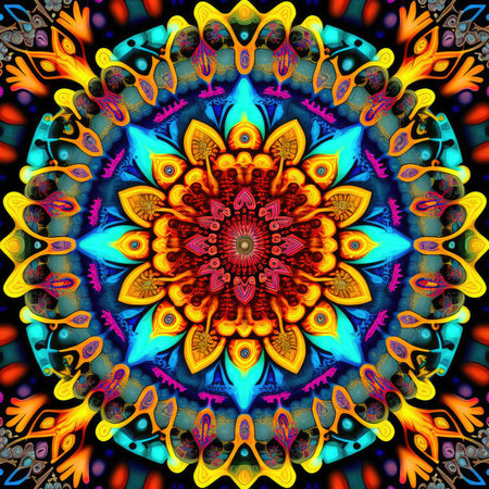 Symmetrical mandala design with vibrant colors, ideal for background, AI generated