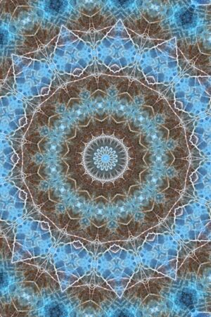 Intricate patterns of mesmerizing blue mandala for meditation and relaxation kaleidoscope art illustration abstract background.